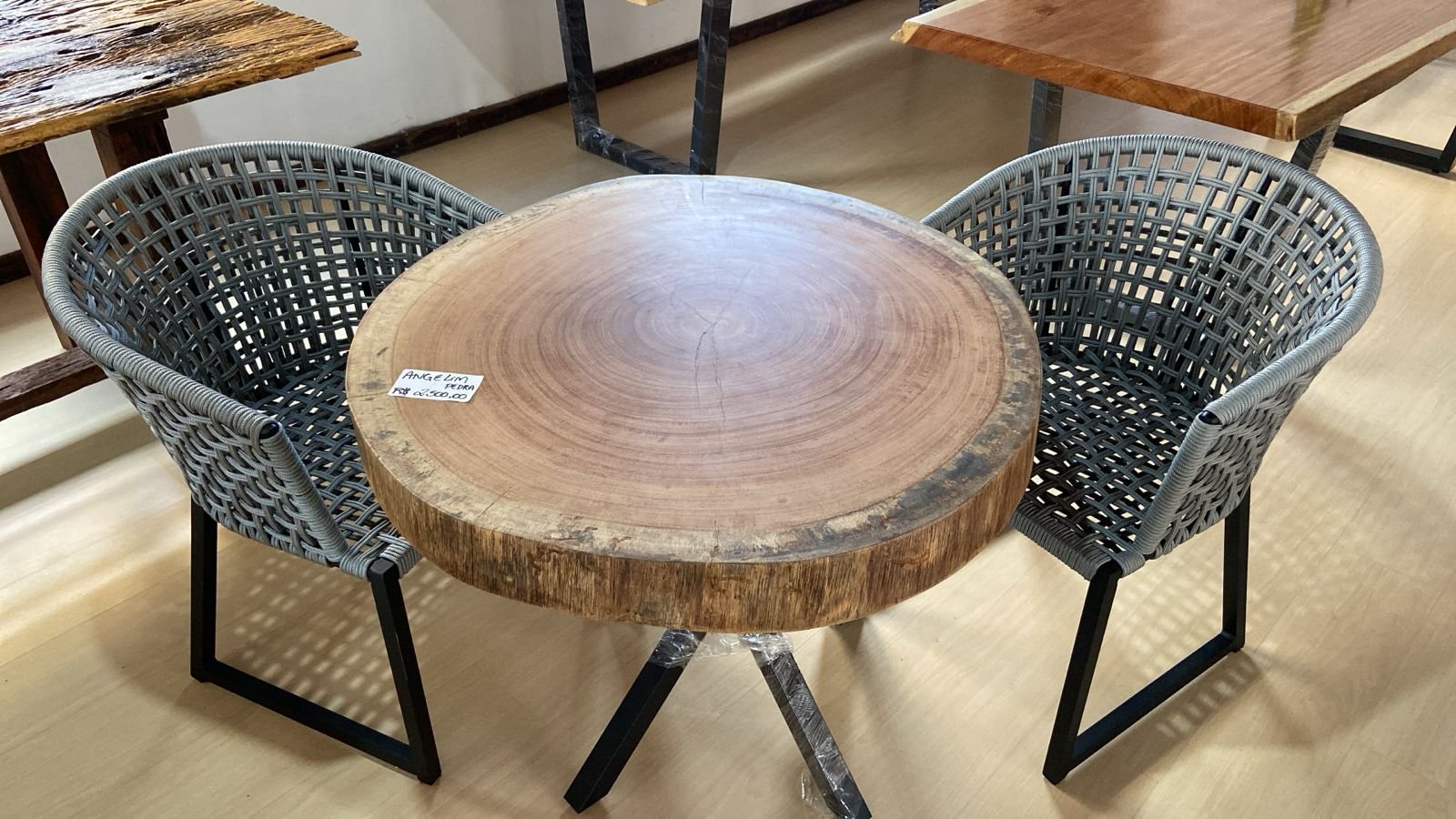 Mesa Angelim Pedra com 4 cadeiras em corda Náutica