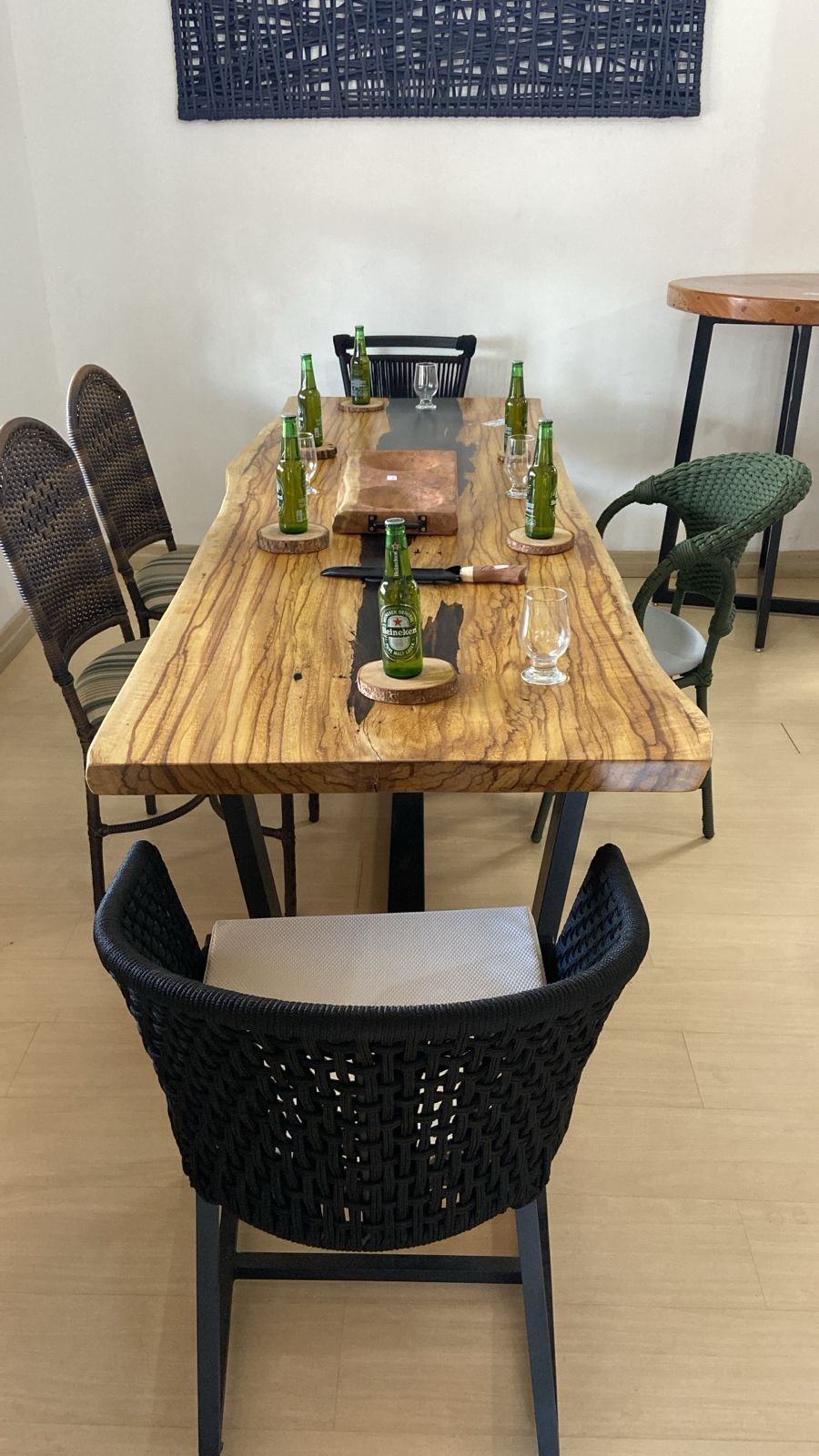 Mesa com resina sucupira amarela com 6 cadeiras de Corda Náutica